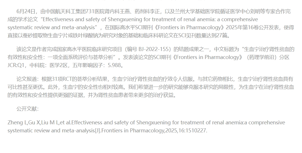 “一项全面系统评价与荟萃分析”在SCI《Frontiers in Pharmacology》发表