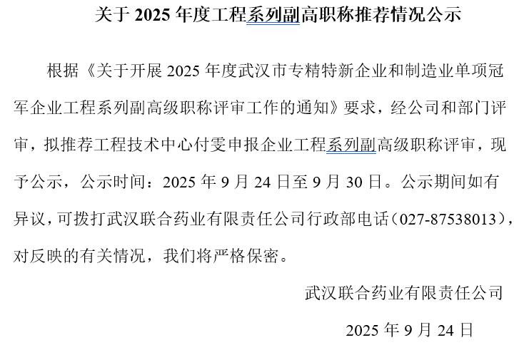 关于2025年度工程系列副高职称推荐情况公示